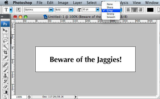 Note: Some times a designer may purposefully not want the fonts to appear smooth, to simulate the appearance of fonts in a web browser etc., in this case selecting none can be handy.